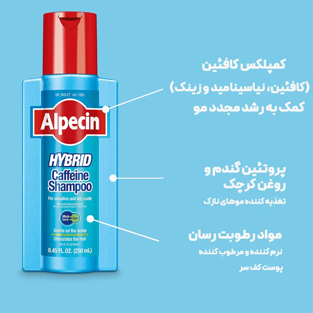 شامپو کافئین ترکیبی آلپسین یک فرمولاسیون ویژه برای درمان و پیشگیری از شوره سر، تسکین خارش و تقویت ریشههای مو است.