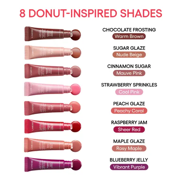 - حاوی: کمپلکس آبرسان اختصاصی Laneige، روغنها و نرمکنندههای مغذی لب، پیگمنتهای شفاف رنگی، آنتیاکسیدانها