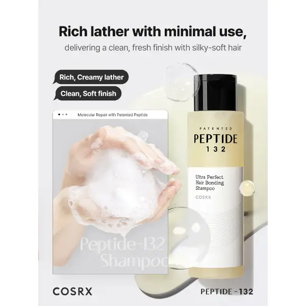 شامپو تقویتکننده مو COSRX Peptide-132 Ultra Perfect Hair Bonding با فرمولاسیونی پیشرفته و مغذی، برای ترمیم و تقویت عمیق موهای ضعیف و آسیبدیده طراحی شده است. این شامپو با بهرهگیری از پپتید 132 و ترکیبات تقویتکنندهی ساختار مو، نه تنها به بازسازی فیبر مو کمک میکند بلکه از ریشه تا ساقه را تغذیه کرده و به موها استحکام، درخشندگی و لطافت میبخشد.