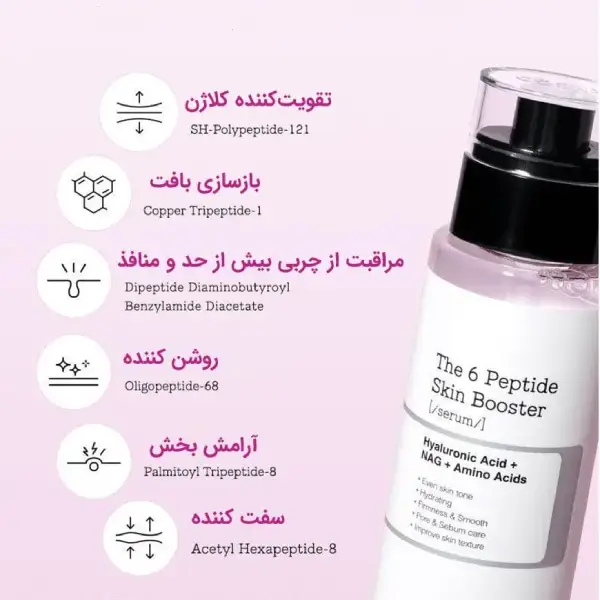 - تقویتکننده کلاژن: ترکیبات پپتایدی موجود در این سرم به تحریک کلاژنسازی کمک کرده و به کاهش چین و چروکهای پوست میپردازد.