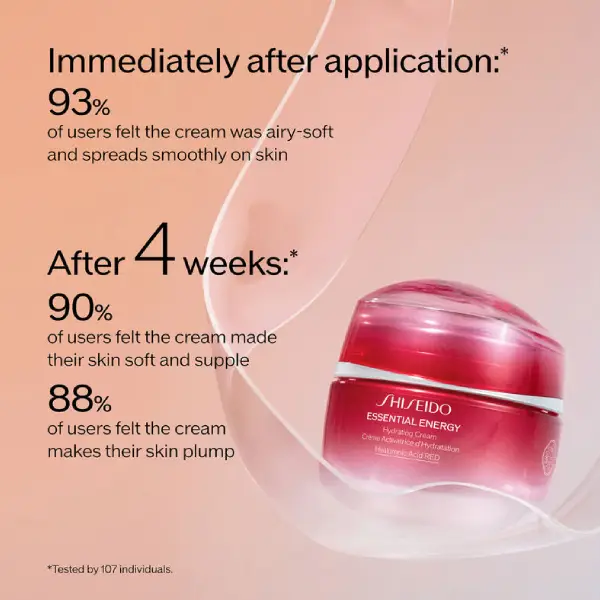 کرم آبرسان Essential Energy از برند لوکس شیسیدو یکی از محصولات پرطرفدار این کمپانی ژاپنی است که با فرمولاسیون پیشرفته و تکنولوژی روز، رطوبت و انرژی ازدسترفته پوست را بازیابی میکند. این کرم بافتی سبک، ابریشمی و زودجذب دارد که بلافاصله پوست را نرم، لطیف و درخشان کرده و مانع از خشکی و کدری میشود.