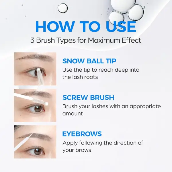 مقدار کمی از سرم را با اپلیکاتور روی ریشه مژههای بالایی و پایینی یا روی ابروها بمالید.