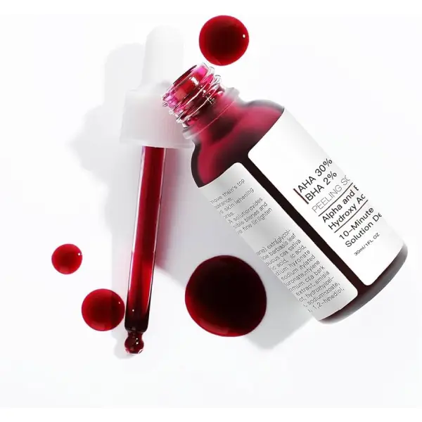 - AHA (30%): شامل گلیکولیک اسید، لاکتیک اسید و سیتریک اسید برای لایهبرداری سطحی و روشن کردن پوست