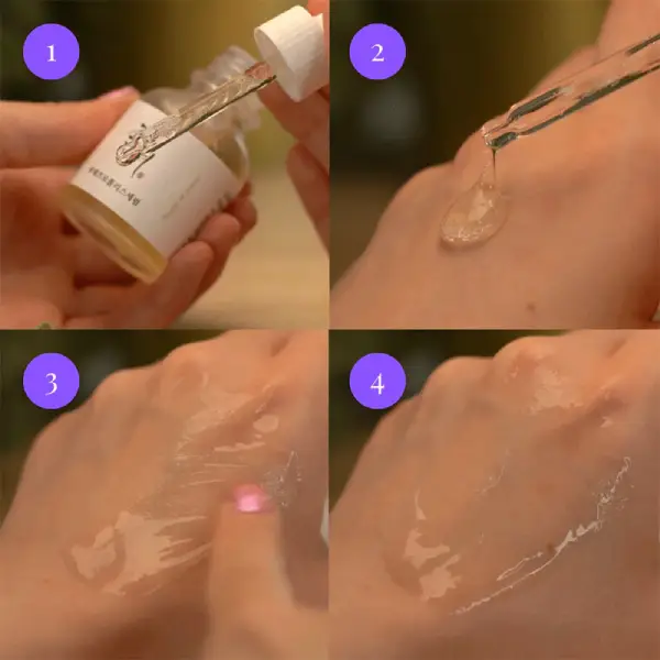 - چند قطره از سرم را روی پوست صورت و گردن بریزید.