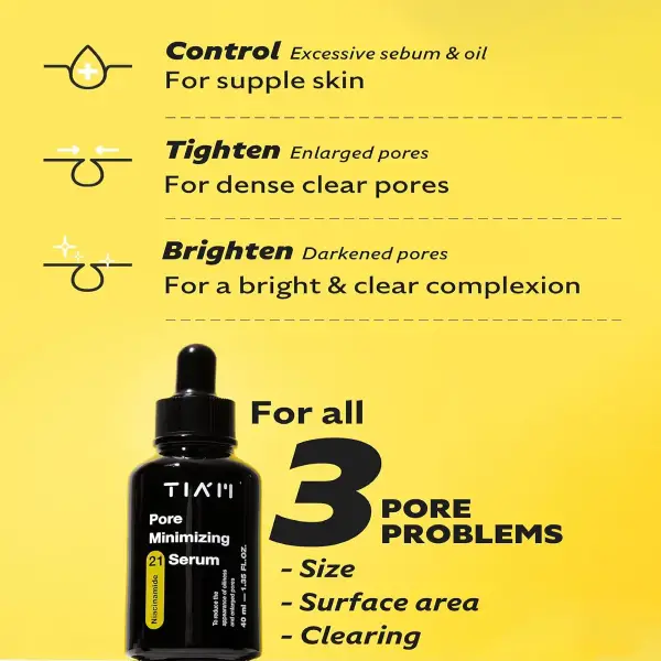 سرم روشنکننده و کوچککننده منافذ تیام یک فرمول تخصصی و چندمنظوره است که با هدف کاهش ظاهر منافذ، کنترل چربی، روشنسازی پوست و یکدست کردن بافت پوست طراحی شده است. این سرم بهسرعت جذب شده و با کنترل ترشح سبوم، ظاهر پوست را صاف، مات و یکدست میکند.